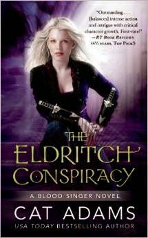 THE ELDRITCH CONSPIRACY is book 5 of the Blood Singer novel series by Cat Adams, and continues the story of Celia Graves, who does bodyguard work for a living, but as of book 1 being attacked by a vampire changed her life: she's not only part-vampire, but her siren abilities were awakened.